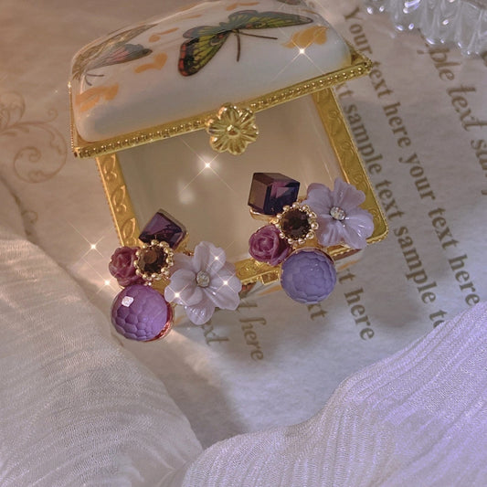 Handmade Violet Purple Floral Wreath Stud Earrings | Healing Crystal Earrings Gift