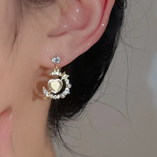 Sailor Moon Jupiter Romantic Heart earrings - Y2K Cupid Love Crescent Moon Dangle Earrings