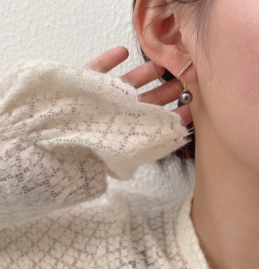 No Piercing Natural Pearl Ear Climber - Arc Gold Dangle Cartilage Helix Cuff Earrings