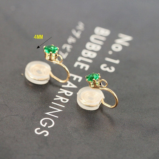 No Piercing Emerald Green Gold Clip on Ear Jewelry - Minimalist Simple Ear Stud Climber Jackets
