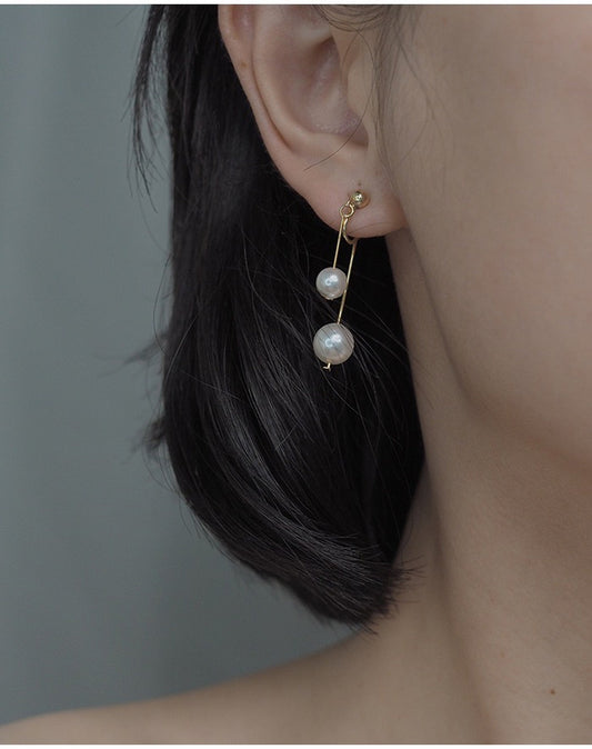 Handcrafted Non Pierced Pearl Studs - Minimalist Natural Pearl Clip On Dangly Stud Earrings