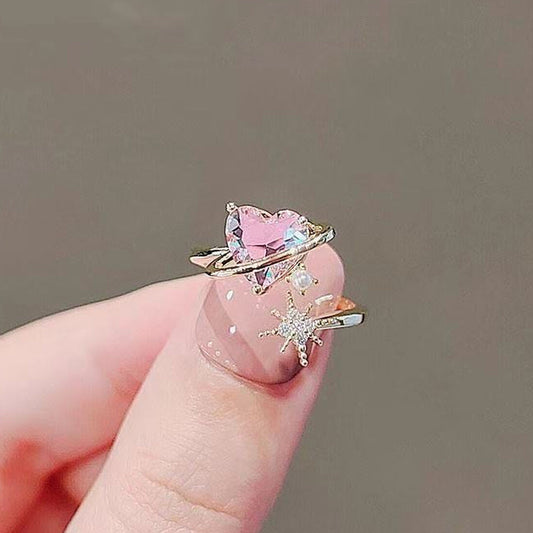Pink Sweetheart Dainty Gold Ring | Romantic Y2K Girl Statement Kawaii-core Rings