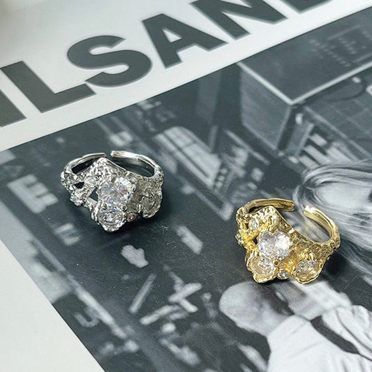 Avant Garde Multi Stone Geometric Chunky Ring | Unisex Punk Streetwear Gold Silver Open Statement Rings