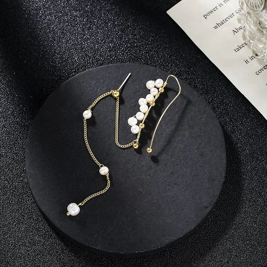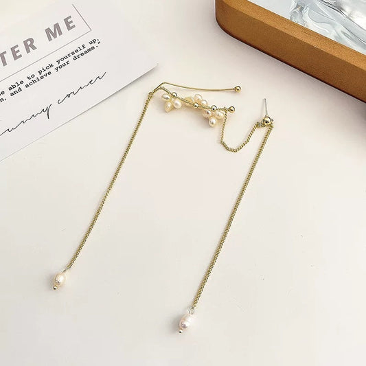 Handmade Natural Pearl Floral Ear Wrap | Multi Layer Dangle Cuff Earrings | Bridesmaid Wedding Earrings