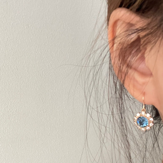 Handmade Gold Lace Blue Sapphire Earrings - Dainty Blue Bridesmaid Wedding Earrings