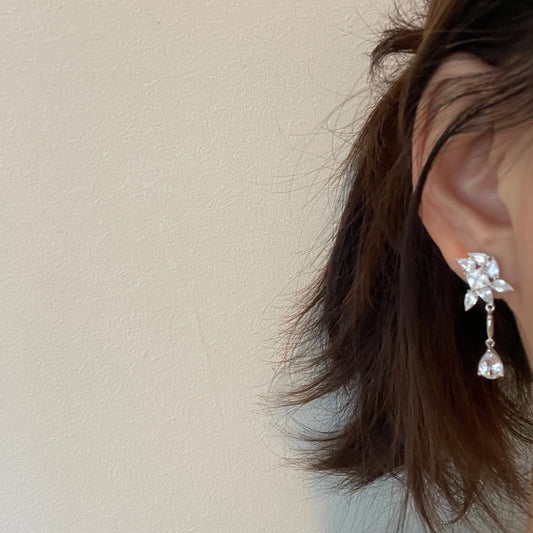 Romantic Bridal Earrings, Ivy Leaf Earrings, Flower Earrings, Diamond CZ Dangle Earrings, Classic Wedding Earrings, Bridal Teardrop Earrings