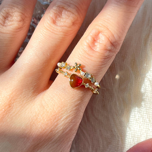 Red Heart Y2K Stacking Ring - Dainty Cute Double Layer Gold Lace Ring