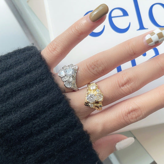 Avant Garde Multi Stone Geometric Chunky Ring | Unisex Punk Streetwear Gold Silver Open Statement Rings