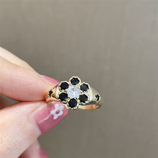 Black Floral Chunky Engraved Gold Ring - Energy Unisex Cocktail Rings