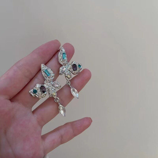 Silver Butterfly Earrings, Multicolored Statement Earrings, Handmade Gemstone Earrings, Chunky Dangle Earrings, CZ Earrings, Birthday Gift