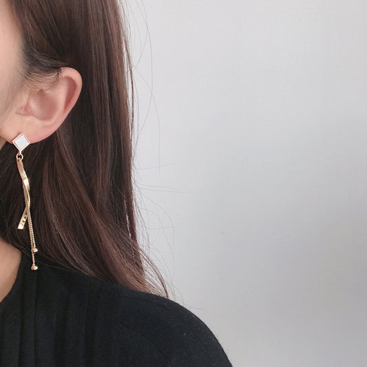 Spiral Dangle earrings, Geometrical Earrings, Gold Corkscrew Earrings, Long Fringed Drop, Wave Earrings, White Enamel Earrings, Minimalist