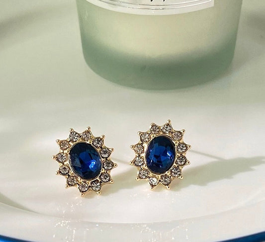Sapphire gold earrings, Royal blue earrings, 18K gold earrings, Oval ear studs, Celebrity style earrings, Delicate wedding bridesmaids gifts