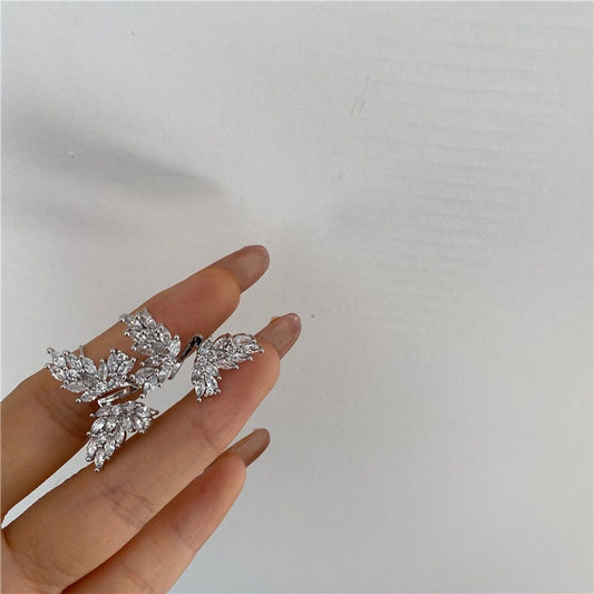 Butterfly Ear Climber, Angel Wings Earrings, Iced out Bling Diamond Earrings, Vine Leaf Bridesmaid Gifts, White Gold Earrings, Mismatched