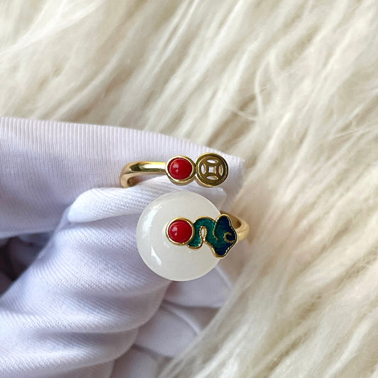 Creative Natural Jade Gold Unisex Cocktail Ring | Rotatable Mobile Nature Energy Ring Gift