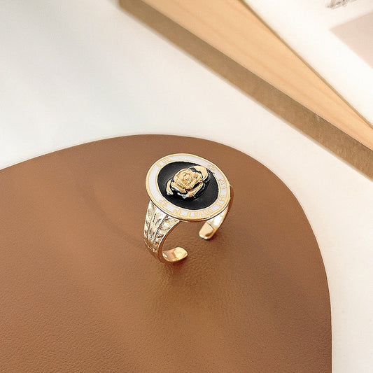 Gothic black signet ring, Engraved statement ring, Gold rose ring, Cameo ring, Chunky ring, Vintage antique ring, Enamel ring, Cocktail ring