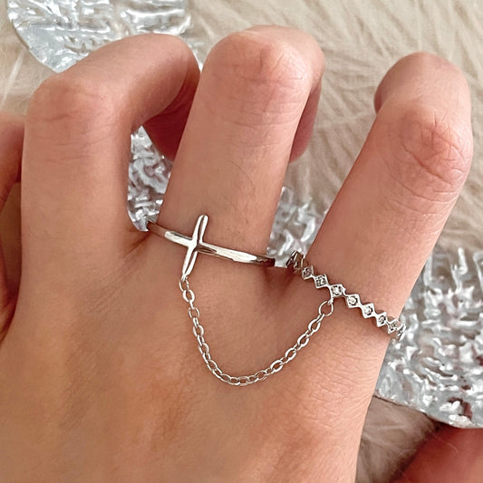 Gothic Cross Rings, Link Chain Rings, Double Duo Rings, Knuckle Ring, Punk Rings, Silver Cross Ring, Cool Ring, Streetwear Ring, Y2K Ring