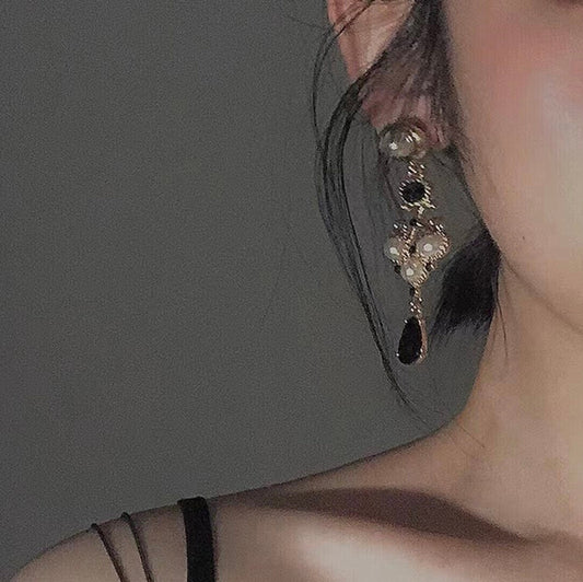 Gothic Black Teardrop Earrings - Victorian Luxury Gold Lace Earrings - Baroque Pearl Black Onyx Fan Drop Earrings