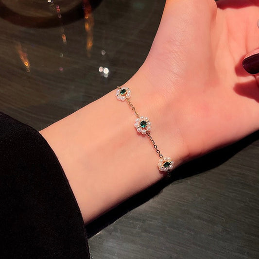 Adjustable Green Emerald and Pearl Bead Bracelet - Handmade DIY Unique Bracelets