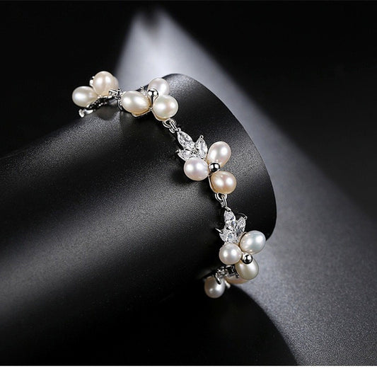 Real natural pearl bridal bracelet, Floral diamond csrytal pearl bracelet, Bridal bridesmaid wedding bracelets gift, Cluster pearl bracelet