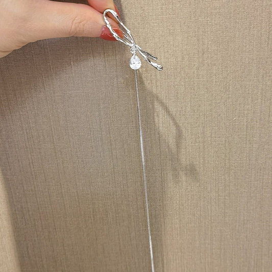 Gothic long dangle ear cuff, Non piercing ear wrap, Silver ear cuff, Bow ribbon earrings, Geometrical ear wrap, Y2K statement ear climber