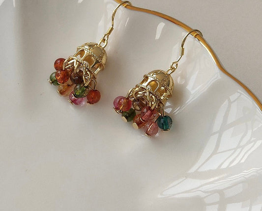 Exotic Gold Rainbow Drop Earrings - Gold Antique Wind Bell Earrings