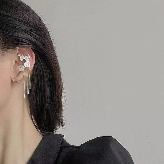Dainty No piercing Pearl Ear Wrap - Multi Layer Dangle Tassel Ear Cuff