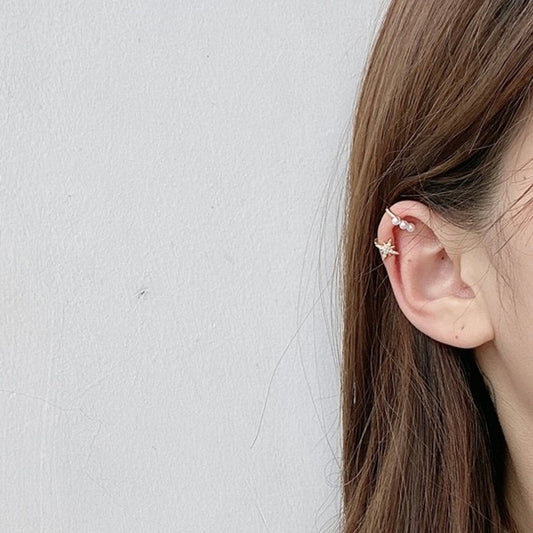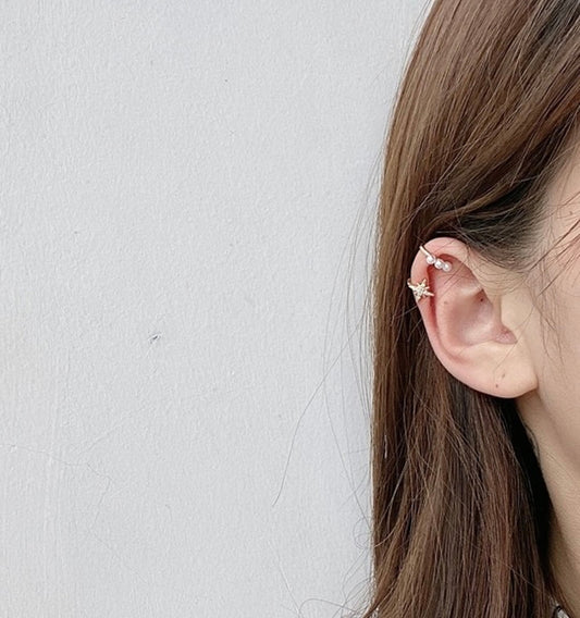 Dainty cuff earrings, Pearl ear cuff, North star ear cuff, CZ ear cuff, Gold ear climber, Minimalist tiny ear jacket, No piercing earrings