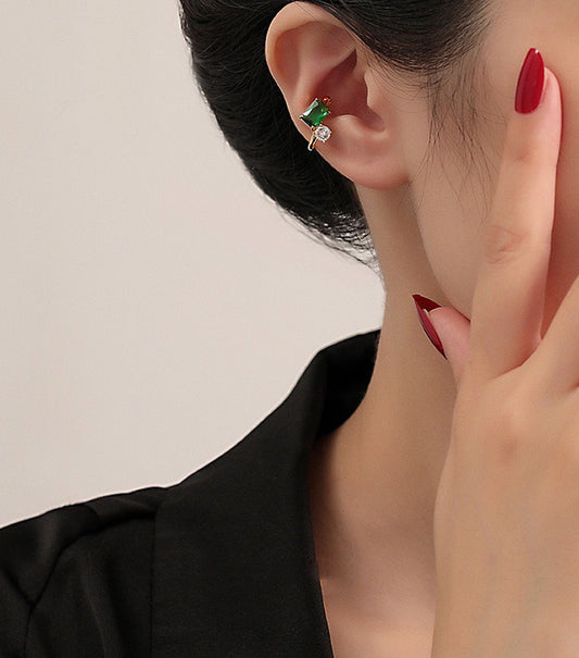 Emerald Ear Cuff Climber Stud - Non Pierced Clip on Helix Conch Cartilage Jewelry - Everyday Simple Studs