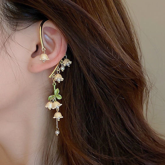 Fairycore Lily Flower Tassel Ear Wrap Cuff | No Piercing Floral Dangle Ear Climber