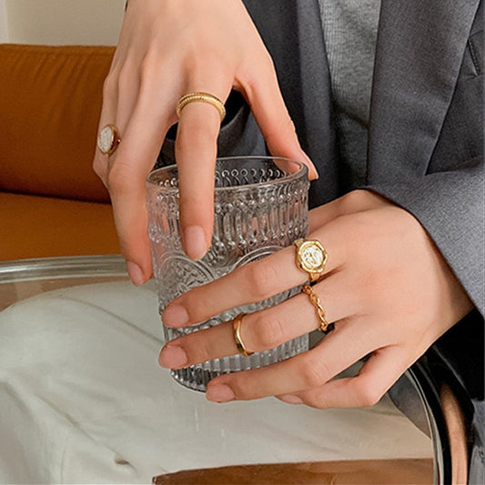 Chunky Gold Cuban Signet Rings - Mix and Match Statement Stacking Ring Set