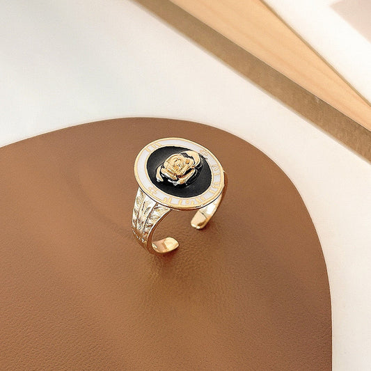 Gothic black signet ring, Engraved statement ring, Gold rose ring, Cameo ring, Chunky ring, Vintage antique ring, Enamel ring, Cocktail ring