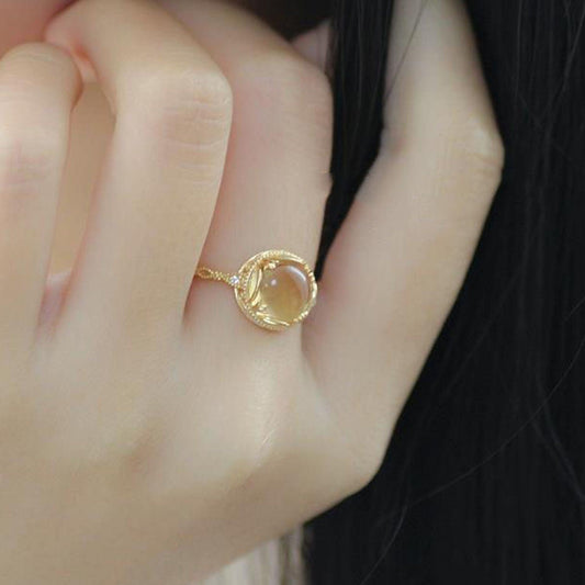 Creative Natural Jade Gold Unisex Cocktail Ring | Rotatable Mobile Nature Energy Ring Gift