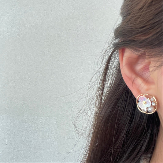 Unique Sakura Flower Cluster Asymmetric Ear Stud - White Pearl 3D Statement Earrings